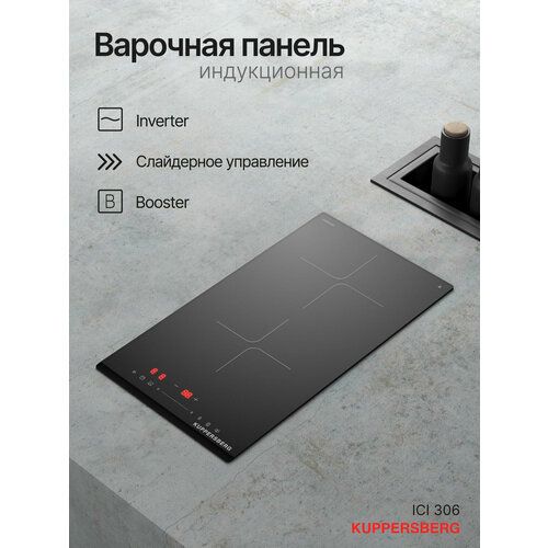 Индукционная варочная панель Kuppersberg ICI 306 — компактное решение шириной всего 29 см, которое подойдёт для малогабаритной кухни, квартиры-студии или встраивания в остров. Две конфорки разного диаметра (160 и 180 мм) оснащены функцией Booster для ускоренного нагрева. Общая мощность подключения — 3,5 кВт.