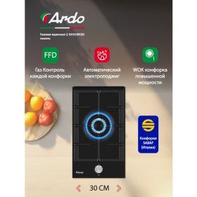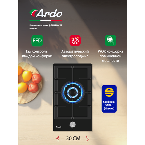 30 см - 1 WOK конфорка• Рабочая поверхность из черного закаленного стекла• Передние управляющие ручки• Устройство системы газ-контроля• Итальянские горелки Sabaf• Автоматическое зажигание под ручкой• Решетка для посуды из чугуна. Если вы ищете компактную и стильную варочную панель для своей кухни, обратите внимание на эту модель шириной всего 30 см. Черный цвет придает ей элегантный и современный вид, который легко вписывается в любой интерьер. Варочная панель оснащена передними управляющими ручками, что обеспечивает удобный доступ и простоту в использовании. Встроенная система газ-контроля гарантирует безопасное использование, предотвращая потенциальные утечки и обеспечивая надежную работу. Итальянские горелки Sabaf, установленные на этой варочной панели, обеспечивают высокую эффективность и равномерное распределение тепла, что позволяет готовить блюда быстрее и с лучшими результатами. Автоматическое зажигание, расположенное под ручкой, делает процесс включения плиты удобным и беспроблемным — достаточно повернуть ручку, и плита сразу начнет работать. Кроме того, прочная решетка для посуды из чугуна не только придает варочной панели дополнительную прочность, но и обеспечивает стабильное и надежное размещение кастрюль и сковородок. Это делает процесс приготовления более комфортным и безопасным.