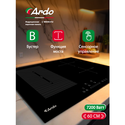 НАЙТИ ВЫГОДНЕЕ - Индукционная варочная панель Ardo IM64B1FS2 60 см функця Boost Flex зона 7200 Вт опция Stop & Go, сенсор защита от перегрева