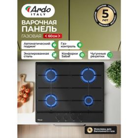 НАЙТИ ВЫГОДНЕЕ - Варочная панель газовая Ardo 60 см, газ-контроль, автоматический электроподжиг, эмалированная сталь, черный