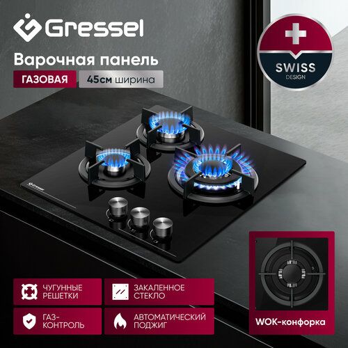 Повысьте комфорт в готовке вместе с Gressel U45N35S000 — газовой панелью шириной 45 см, имеющей три конфорки (две стандартные и одну WOK). Благодаря дополнительной конфорке WOK общей мощностью 6250 Вт вы сможете быстро обжаривать ингредиенты на сильном пламени или готовить блюда восточной кухни, не беспокоясь о равномерном прогреве.
