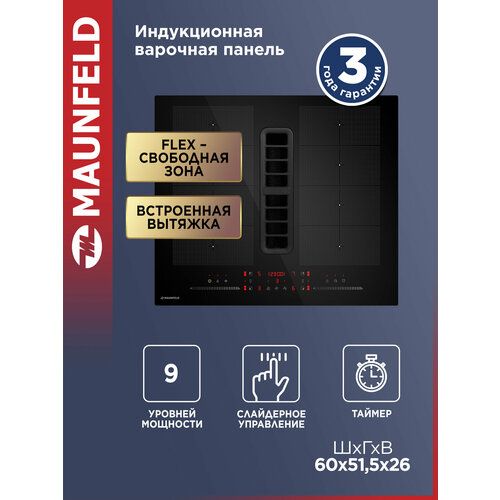 Индукционная варочная панель с интегрированной вытяжкой и Flex Zone MAUNFELD MIHC604SF2BK 63479150