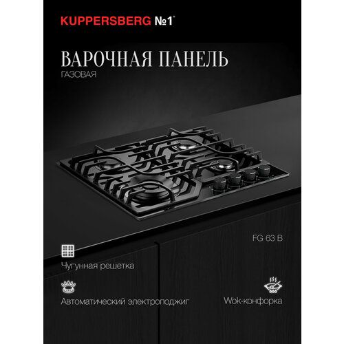 НАЙТИ ВЫГОДНЕЕ - Газовая варочная панель Kuppersberg FG 63, черный