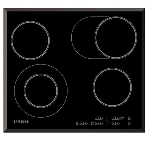 Стеклокерамическая варочная поверхность имеет сенсорное управление для четырех высокотехнологичных зон с мощными нагревательными элементами.