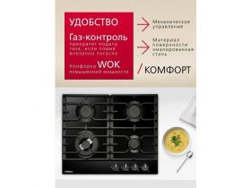Газовая варочная поверхность Hansa BHGS611839, с WOK-конфоркой, газ-контролем и автоподжигом, черная 103674332200