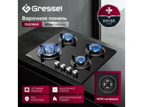 Газовая варочная панель Gressel U60H41S011 60 см, закаленное стекло, WOK-конфорка, электроподжиг, газ-контроль 103594896779