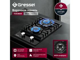 Газовая варочная панель GRESSEL U30H20S001 30 см, закаленное стекло, WOK-конфорка, автоматический розжиг, газ-контроль, чугунные решетки 103594344486