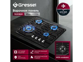 Газовая варочная панель GRESSEL U60H41S001 60 см, закаленное стекло, WOK-конфорка, электроподжиг, газ-контроль 5189249400