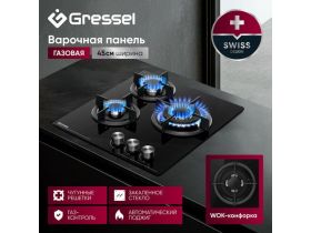 Газовая варочная панель GRESSEL U45H35S001 45 см, закаленное стекло, WOK-конфорка, электроподжиг, газ-контроль 5225730275
