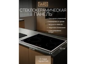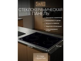 Варочная панель Vard, VHC6464X, стеклокерамика, 4 конфорки, черная, с рамкой 103791266696