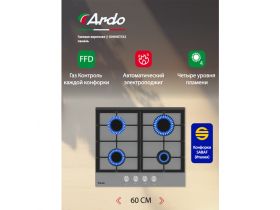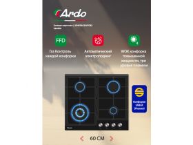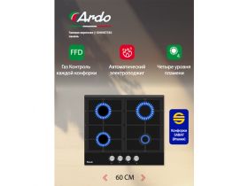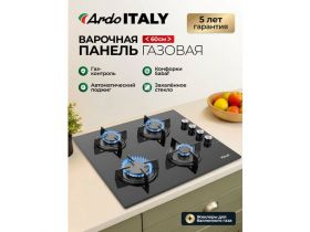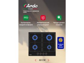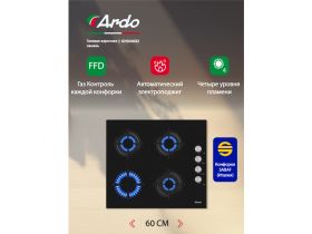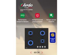 Газовая варочная панель Ardo 60 см, черное закаленное стекло, газ-контроль, экспресс-конфорка, электроподжиг 4316541870