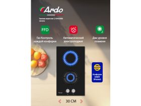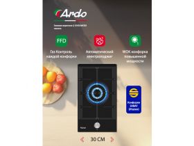 Газовая варочная панель Ardo 30 см, черное закаленное стекло, газ-контроль, автоматический электроподжиг 4316588398