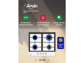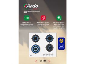 Газовая варочная панель Ardo 60 см, белое закаленное стекло, чугунные решетки, газ-контроль, электроподжиг, 4330651440