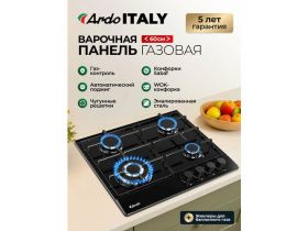 Газовая варочная панель Ardo 60 см, черное закаленное стекло, чугунные решетки, газ-контроль, электроподжиг 4321648166