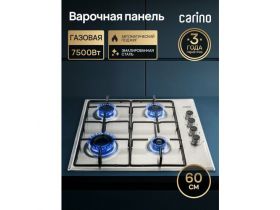 Газовая варочная панель CARINO CH60Q40W411, 60см, газ-контроль, 7500Вт, автоподжиг, эмаль 4519007808