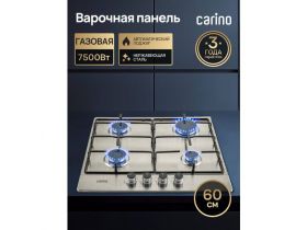 Газовая варочная панель CARINO CH60Q40M411 60 см, газ-контроль, нержавеющая сталь, автоматический розжиг, эмалированные решетки 103763912787