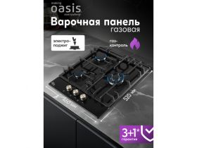 Варочная панель газовая Oasis P-3GBT, 3 конфорки, газ-контроль, электроподжиг, черная 4453990560