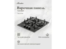 Газовая поверхность Monsher MSG 43 Noir, 45 см, решетки: чугунные, черный, Китай 4352686474