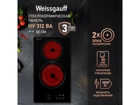 Варочная панель Weissgauff HV 312 BA 3 года гарантии, 2х контурная зона расширения, Сенсорное управление, Мощность 2900 Вт, Таймер, Индикация остаточного тепла, Защитное автоотключение, Блокировка от детей 1783266583