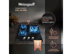 Варочная панель Weissgauff HGG 451 BFH WOK-конфорка, 3 года гарантии, автоматический электроподжиг, Рукоятки Hi-Tech, газ-контроль 417635133