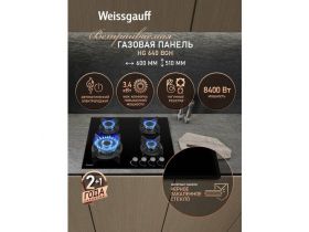 Варочная панель Weissgauff HGG 640 BGV WOK-конфорка, 3 года гарантии, автоматический электроподжиг, Рукоятки Hi-Tech, газ-контроль 102801071744