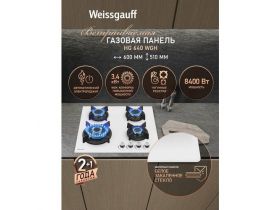 Варочная панель Weissgauff HGG 640 WGW WOK-конфорка, 3 года гарантии, автоматический электроподжиг, Рукоятки Hi-Tech, газ-контроль 101980330772