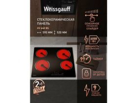 Стеклокерамическая панель Weissgauff HV 32 B сенсорное управление, 3 года гарантии, Сенсорное управление, Мощность 3000 Вт, Таймер, Индикация остаточного тепла, Защитное автоотключение, 30 см ширина 117391778