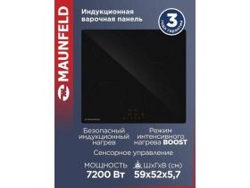 Варочная панель MAUNFELD AVI594BK, индукционная, стеклокерамика, черная, 59x52 см 103729318687