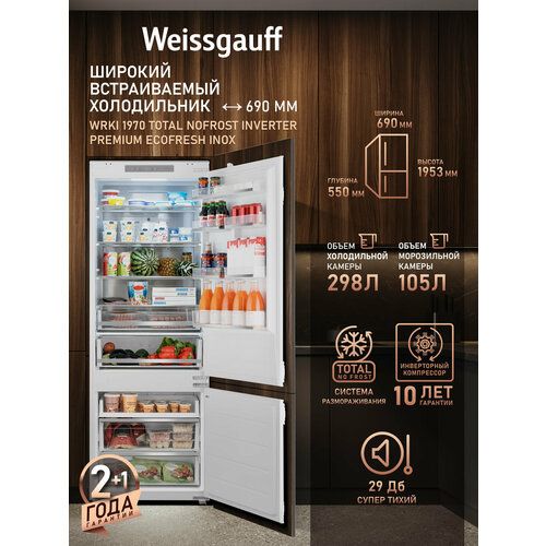 Встраиваемый холодильник с инвертором Weissgauff WRKI 1970 Total NoFrost Inverter Premium Ecofresh Inox 103660361406
