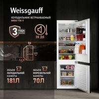 Встраиваемый холодильник Weissgauff Wrki 178 V двухкамерный, 3 года гарантии, Объём 256 л, Супер режим, Заморозка 4 кг сутки, Сохранение холода 18 часов, LED освещение камеры, Тихий режим работы, Перенавешиваемые двери, Полки закаленное стекло, А+ 1017708