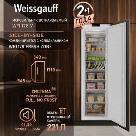 НАЙТИ ВЫГОДНЕЕ - Встраиваемый морозильник Weissgauff WFI 178 V 3 года гарантии, Полностью система No Frost, Электронное управление, Возможность установки Side-By-Side