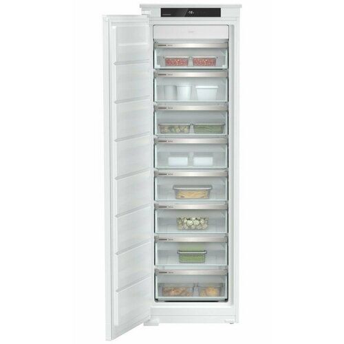 Встроенные направляющие всегда обеспечивают удобный доступ к Вашим продуктам при открытых и загруженных выдвижных контейнерах морозильного отделения. Ограничитель выдвижения предотвращает их выпадение. При задвижении выдвижные контейнеры без усилий перемещаются в оптимальное конечное положение, что обеспечивает правильное распределение воздуха перед выдвижными контейнерами и, следовательно, оптимальное охлаждение.