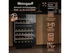 Встраиваемый винный холодильник Weissgauff WWC-46 DB DualZone компрессорный холодильник для вина, две зоны, 46 бутылок, 3 года гарантии 101982055963