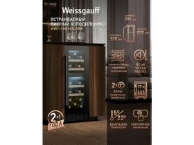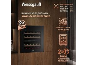 Встраиваемый винный холодильник Weissgauff WWCI-36 DB Dual Zone компрессорный холодильник для вина, 36 бутылок, 3 года гарантии 101982055965