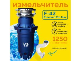 Бытовой измельчитель WASTE FIGHTER F-42 Premium Pro Max без магнитного улавливателя 750 Вт, черно-серый 102501511830