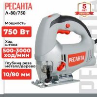 Электролобзик РЕСАНТА Л-80/750, 750 Вт серый 665257148