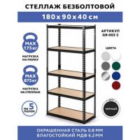 Стеллажи металлические безболтовые Gastrorag GR-003-5 размером 180х90х40 см представляют собой универсальную 5-ярусную систему хранения вещей для гаража и сада, кладовой, кладовки и подсобки, балкона и лоджии. Это многофункциональная мебель в стиле лофт для квартиры, дома, дачи и офиса. Они также подойдут в качестве больших торговых или складских стеллажей для магазина. Стеллаж лофт можно использовать в качестве перегородки для зонирования пространства гостиной, спальни и гардеробной. В гараже и мастерской он подойдет в качестве полки для хранения инструментов или металлического органайзера. Дома и на даче используйте его как подставку для обуви в прихожую, открытый шкаф для одежды, книг и игрушек, кухонного стеллажа для посуды или полки для микроволновки на кухню. В садоводстве он пригодится в качестве стеллажа под рассады, этажерки для комнатных цветов и растений. Ему найдется применение и в качестве офисной мебели для хранения папок с документами и размещения оргтехники. Железный окрашенный стеллаж поставляется в разобранном виде. Стеллаж трансформер укомплектован стойками, которые состоят из двух частей. Благодаря этому вы сможете собрать как один стеллаж высотой 180 см с 5 полками, так и 2 стеллажа высотой 90 см с 2 и 3 полками. Стойки и рамы полок изготовлены из прочной стали толщиной 0.8 мм с порошково-полимерным покрытием, полки - из влагостойкого МДФ толщиной 6.2 мм. Влагостойкий МДФ может в течение длительного времени выдерживать повышенную влажность воздуха, поэтому стеллаж можно использовать и для ванной комнаты, однако прямого попадания жидкости на его поверхность следует избегать. Стеллаж имеет практичное безболтовое соединение (тип зацепа - клепка) и легко собирается при помощи деревянной или резиновой киянки. Пластиковые подпятники надежно предохраняют пол от повреждений. Жесткости конструкции и толщины металла и МДФ достаточно для того, чтобы обеспечить максимальную распределенную нагрузку на полку - 175 кг, на весь стеллаж - 875 кг. Длина полочки 90 см, ширина 40 см. Высота полок регулируется с шагом 30 мм. Высота полок регулируется с шагом 30 мм. В целях обеспечения устойчивости рекомендуется ставить стеллаж вплотную к стене и дополнительно крепить его к стене.