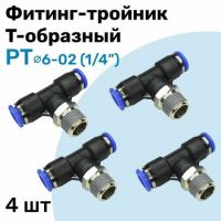 НАЙТИ ВЫГОДНЕЕ - Фитинг прямой пневматический, штуцер цанговый PC 10-02 (1/4), Пневмофитинг NBPT, Набор 4шт
