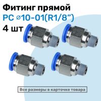 Фитинг прямой пневматический, штуцер цанговый PC 10-02 (1/4"), Пневмофитинг NBPT, Набор 4шт 102061884988
