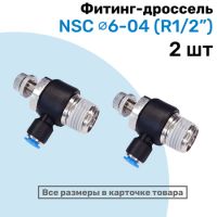 Угловой регулятор расхода воздуха, Фитинг-дроссель с обратным клапаном NSC 08-04 (1/2"), Пневмофитинг NBPT, Набор 2шт 102061944703