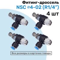 Угловой регулятор расхода воздуха, Фитинг-дроссель с обратным клапаном NSC 08-02 (1/4"), Пневмофитинг NBPT, Набор 4шт 102061944704
