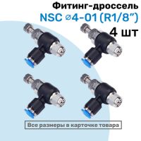 Угловой регулятор расхода воздуха, Фитинг-дроссель с обратным клапаном NSC 04-M5, Пневмофитинг NBPT, Набор 4шт 102061947643