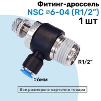 Угловой регулятор расхода воздуха, Фитинг-дроссель с обратным клапаном NSC 08-04 (1/2"), Пневмофитинг NBPT 102062469636