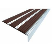 Алюминиевый накладной угол-порог противоскользящий с пятью вставками 160 мм, 1 метр, серый, накладка на ступени против скольжения.