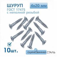 Шуруп потайной под крест 3х20 мм сталь, цинк ГОСТ 1145-80, 10 шт.