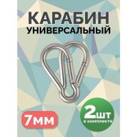 Карабин универсальный, стальной, оцинкованный, 7 мм. 2 шт. 102567407373
