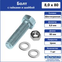 Болт оцинкованный М8 х 90 мм с шайбой и гайками 1 шт