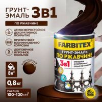 НАЙТИ ВЫГОДНЕЕ - Грунт-эмаль по ржавчине 3 в 1 FARBITEX Красный 0,8 кг