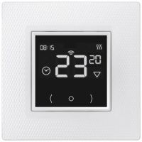 Термостат выполнен из высококачественного пластика и металла. Его назначение - регулировка температуры в комнате, при этом с возможностью управления теплом со смартфона.