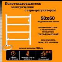 - Полотенцесушитель электрический РуДизайн, Классическая Лесенка с таймером и терморегулятором. Ширина 50 см, высота 60 см, 4 перекладины в форме скобы. Выполнен из нерж. трубы марки AiSi 304. Лесенка состоит из стоек круглого сечения Ø 30мм и круглых перекладин Ø 16мм. Панель управления находится на стойке слева. Управление кнопочное, есть индикаторы, указывающие на работу устройства.